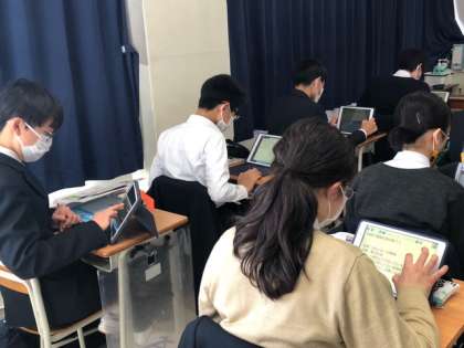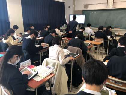 課題解決に向けて 公開日 2023/02/15 更新日 2023/02/15 できごと 2年生の理科は、天気の「前線」について学んでいました。課題について、ロイロノートにまとめていきます。iPadを使っての授業ももうすっかり定着しています。