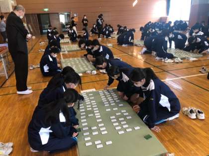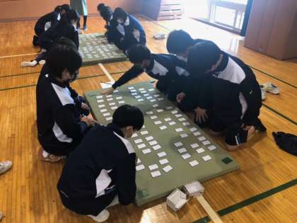 日本の伝統文化であるかるた遊び、百人一首の学年大会が行われています。みんな熱が入っています!