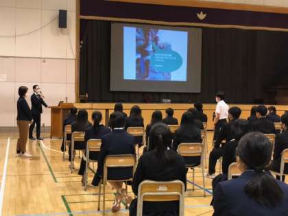 JICA講演会2(3年生) 公開日 2023/03/08 更新日 2023/03/08 できごと 話は、SDGsについて、現地で実際生活して気付いたこと、異文化理解や国際協力の必要性についてなど、多岐にわたりました。生徒たちは、最後の質問コーナーで積極的に質問をしていました。きっと広い視野で世界を見ることの大切さを学んだことでしょう。