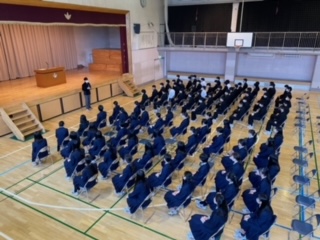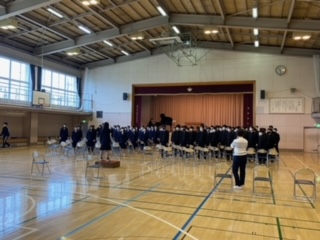 本番に向け、3年生が卒業式の練習を行いました。歌の練習も頑張っていました。