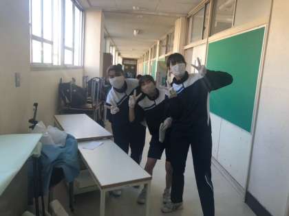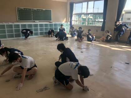 清掃の合間に見せる笑顔が素敵です。みんなで作業することを楽しみながら進めているようです!