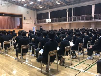 卒業式予行(1.2年生と3年生のお別れ会)に向けて、1.2年生合同練習がありました。当日は、厳粛な中にも心温まる素敵な時間を共有できますように。