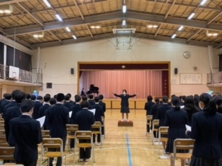 1.2年生で卒業式予行の練習をしました。歌の練習もがんばりました。