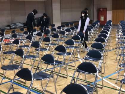 20日の卒業式に向けて、細かいところまで心配りした会場設営を行なっています。卒業生が気持ちよく巣立っていくことができますように!