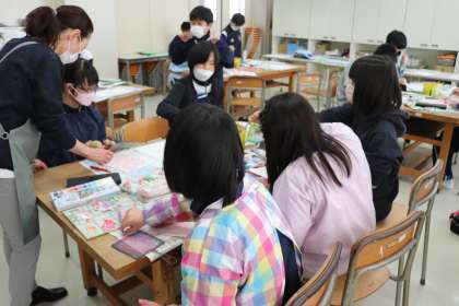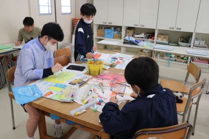 「私は青が好きだから青色の絵の具にしょう!」「先生〜、これ見てくださいよ。○○現場です。やべえ〜。笑」