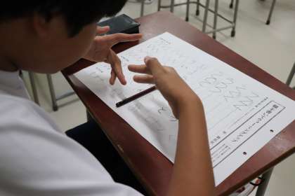 書道の授業は硬筆を学んでいます。きれいな線を書けると文字も整います。