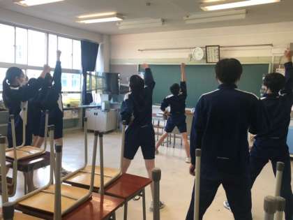 運動会の応援団が始動しています。まずは3年生の応援団の生徒たちが中心になって、応援の中身の組み立てをしていきます。みんな「難しいなあ!」と言いながらも和気あいあい、楽しそうです。