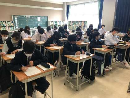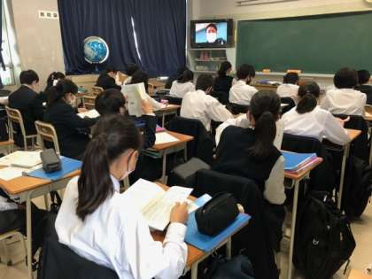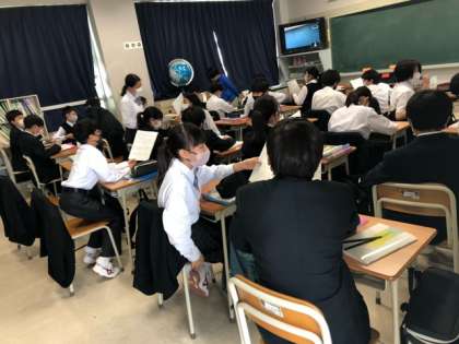 1年生はこれから一年間の「総合的な学習の時間、日本語の授業」についてのガイダンスを行いました。zoomを活用して教室で一斉に実施しましたが、生徒たちは興味深げに話を聞いていました。SDGsに関する問題にも楽しそうにチャレンジしていました。
