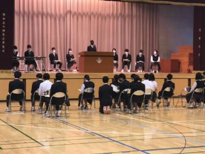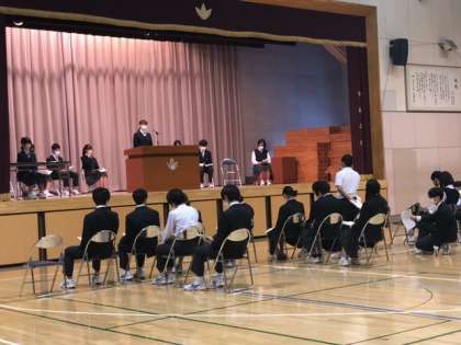 8日に行われる生徒総会のリハーサルを行っています。みんな本番さながら、真剣そのものです。