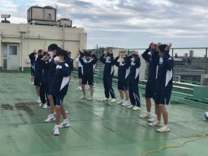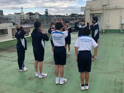 少人数に分かれて3年生が1、2年生に応援ダンスの振り付けを教えていきます。何とも微笑ましい光景です。3A、2A,1Aの赤組の練習風景です。