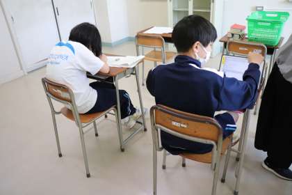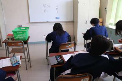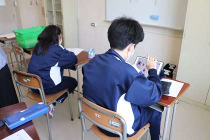 わからない文字や言葉をタブレットで調べています。タブレットを身近な文房具として使いこなしています。