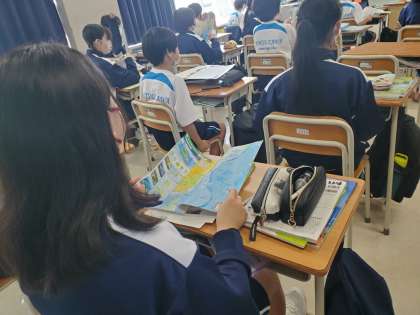 1Cの社会です。日本の都道府県について学習をしています。日本は意外と広いことにびっくりです。