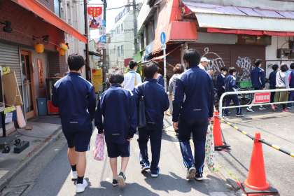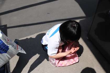 疲れちゃったな。今日は運動会の朝練で、たくさん大縄跳びをやったから足も痛いの。でも頑張って歩きます。男子は元気、元気。体力あるな〜。