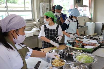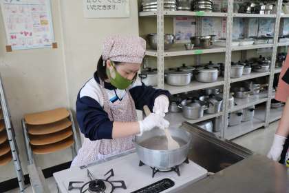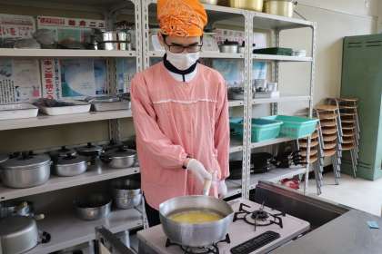 メニューは『豚汁・目玉焼き・ウインナー・ごはん・オレンジゼリー』