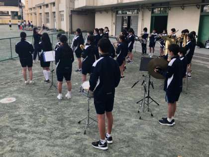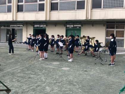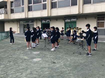 運動会の行進曲を担当するのは吹奏楽部です。今日の放課後、実際に校庭で音を出す練習をしていました。当日は、よろしくお願いしますね!