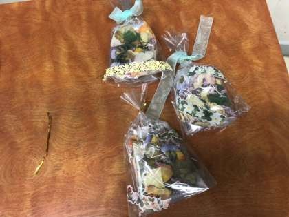 ポプリは「自分で楽しむだけでなく商品として売る」ことをイメージしながら作っていきます。廃花から商品化するものを作るという経済の流れの勉強にもなるし、SDGsの勉強にもなりますね。生徒たちはどの花を選ぼうか、楽しそうです!