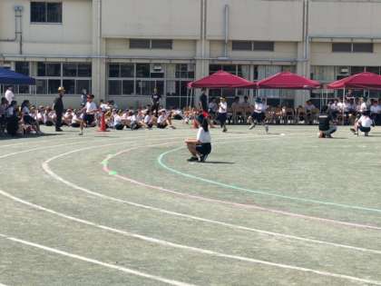 80M走は、1.2レースのみ実施します。予行とはいえ、みんな真剣です。