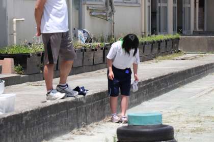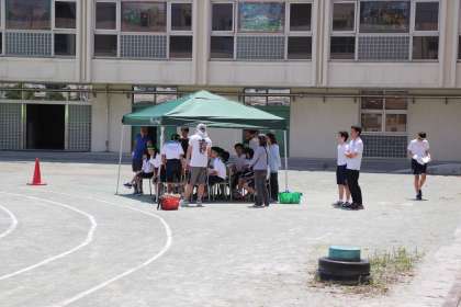 水分を摂りながら、生徒は頑張っています。「足が少し気になるけど大丈夫です。自分でできるので〜。」頼もしいです。