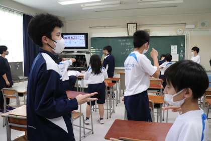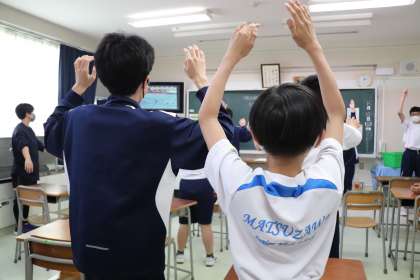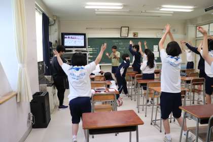 外は雨。応援団ダンスの動きは教室で確認することになりました。明日の運動会できるかな。