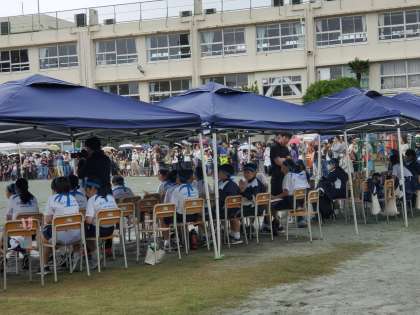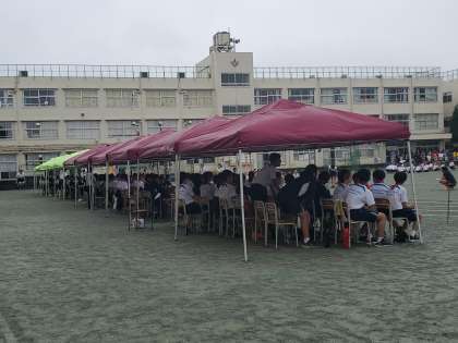 今年から生徒席にテントを張りました。小雨でも大丈夫です