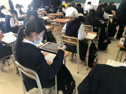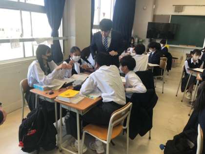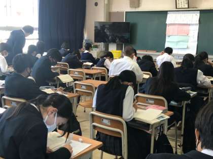 緊張しています。 公開日 2023/05/24 更新日 2023/05/24 できごと 教育実習生が研究授業をしています。とても緊張しているようですが、生徒たちは積極的に発言したり、班で意見を言い合ったりして、とてもいい雰囲気の授業です。