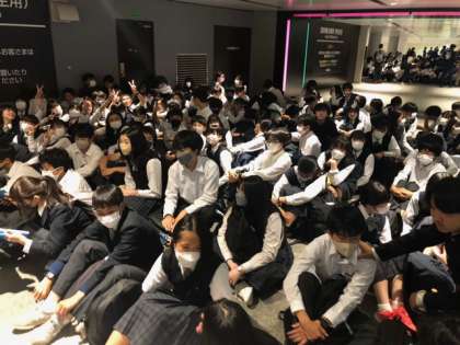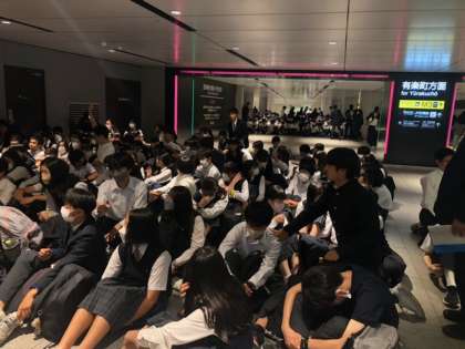 時間通りにみんな集合しました。これから出発式です。東京駅は、たくさんの学校が集まっています。
