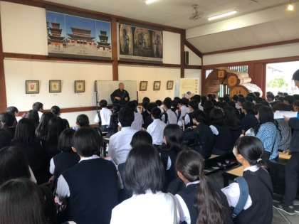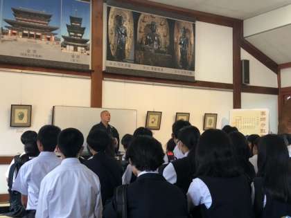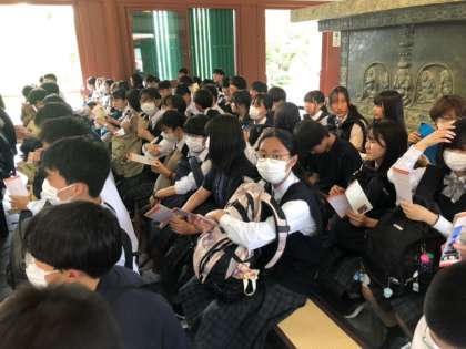 薬師寺のお坊さまのお話を聞いています。楽しくわかりやすく薬師寺のお話をしてくださっています。