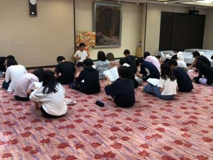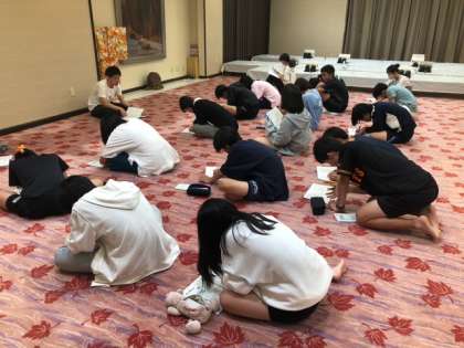 修学旅行 公開日 2023/05/26 更新日 2023/05/26 できごと 班長、室長会議で今日の反省と明日の確認をしています。今現在、体調を崩したり、怪我をしたりした生徒はおらず、みんな元気です。明日は今日以上に暑い一日になるようです。しっかり睡眠をとって明日も元気に過ごしましょう!