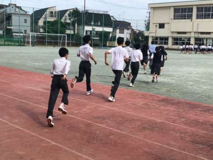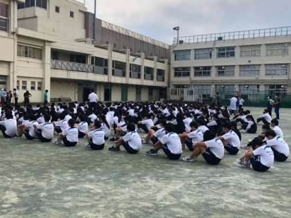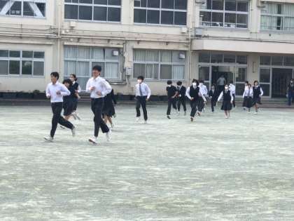 ?火災を想定した避難訓練を行いました。校舎から外に出たら、みんな小走りで集合場所に向かいます。「具あれば憂いなし」みんな真剣に取り組んでいました。