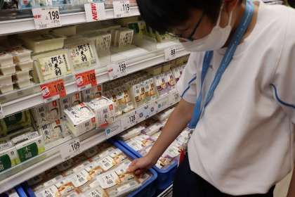 明日は『三色丼、豆腐とねぎの味噌汁、カルピスゼリー』だね。