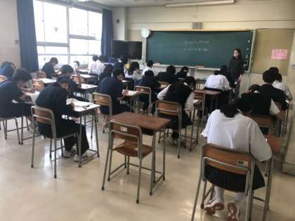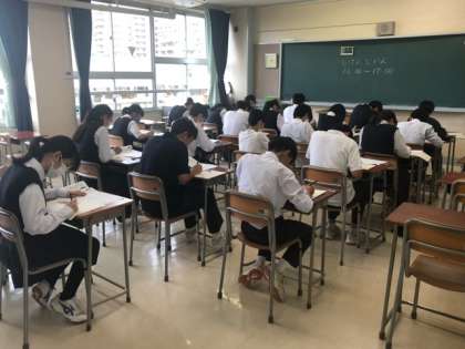 学校運営委員の皆さんが中心になって年3回実施していただいている漢字検定。今日もたくさんの生徒たちがチャレンジしています。