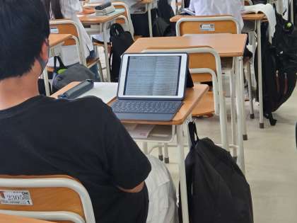 今日は土曜授業日です。1校時は合唱曲を選んでいます。