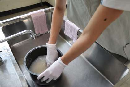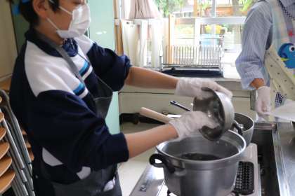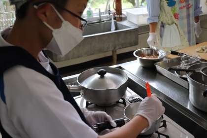 豚肉の生姜焼き、サラダ、すまし汁、ヨーグルトムース