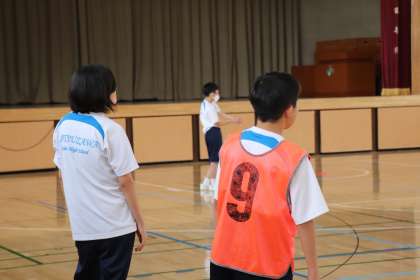 もうすぐ連合球技大会です。ルールを確認しながら練習しています。