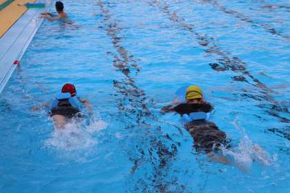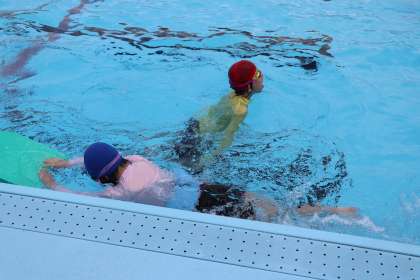 水の中を楽しんでいます。みんな上手に泳ぎます。
