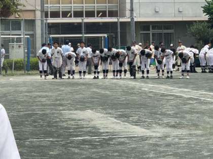 野球部 選手権大会3回戦 公開日 2023/06/24 更新日 2023/06/24 できごと 結果は残念でしたが、特にこの1年間は他校と合同チームを組んでよく頑張りました!1.2年生は3年生の思いを引き継ぎ、これから自分たちのチームをつくりあげていってください!