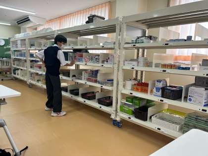 物流という授業で使う教室で、実際に体験をさせてもらいました。デジタルピッキングシステムという、都立学校でも青鳥特別支援学校にしかないシステムに触れて生徒は驚いていました。