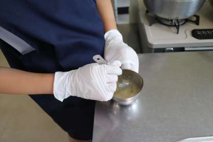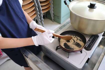 ごまはフライパンで炒って、すり鉢ですります。おいしそう!