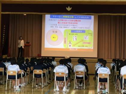 マナー講座(2年生) 公開日 2023/07/07 更新日 2023/07/07 できごと 9月に実施する職場体験を前に、講師を招いてマナー講座を実施しました。職場体験の際の基本事項の他に、挨拶の仕方や接遇について具体的なアドバイスをいただきました。