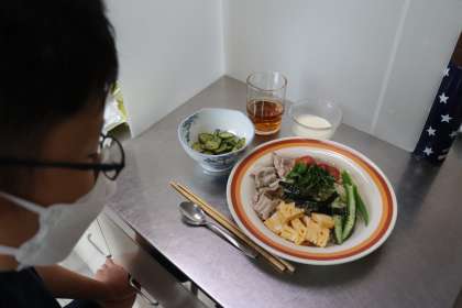 ときわ調理4 公開日 2023/07/14 更新日 2023/07/14 ときわ学級 冷やし五目うどんの上に載せるのは「豚肉、ミニトマト、卵、オクラ、青しそ、のり」です。あれ?六種類の食材が載っているね。でも細かいことは気にしない。とにかく、おいしいんだから良しとしよう。