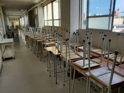 おはようございます。昨日の大掃除で教室は綺麗になりました。これから廊下の机を入れます。
