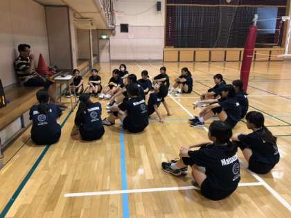 ?まずは基本のバス練習から。練習の合間には、顧問の先生が「夢を持って頑張ること」の大切さについて話をしていました。