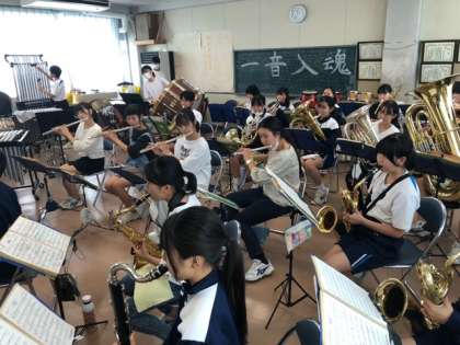 吹奏楽部は、8月9日の吹奏楽コンクールに向けて、練習に熱が入っています。音の奥行きも感じられるようになってきました。