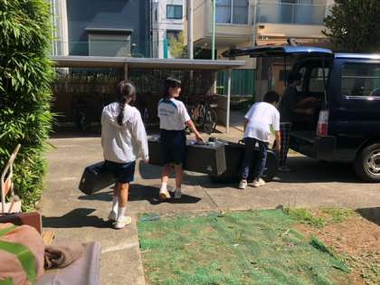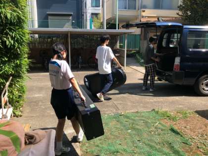 8月7日からエアコン工事が本格的に始まるため、松沢小学校をお借りしてコンクール前の練習を行います。今日はそのための楽器運びです。