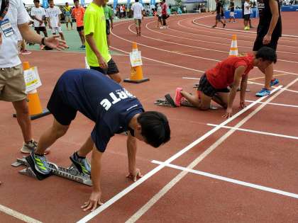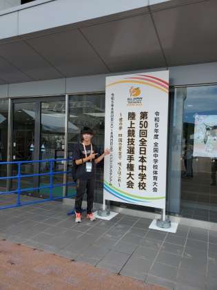 3年の黒田くんが陸上の全国大会の100m短距離に出場します。あと1時間でスタートです。最終調整中です