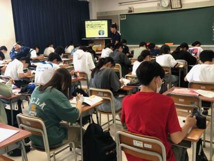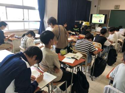 道徳授業地区公開講座 公開日 2023/09/09 更新日 2023/09/09 できごと 3年生は「思いやり 感謝」という内容項目を取り上げました。生徒たちは、資料を読み込み、自分ならどうするか、という視点で真剣に考えていました。