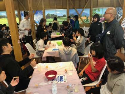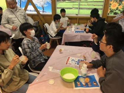 バターの出来上がり!出来立てのバターをクラッカーにつけていただきます!