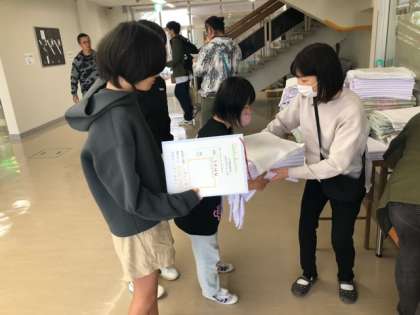 部屋に入ります。整備係の生徒は、シーツなど寝具を部屋に運びます。松沢中は、もうすぐお風呂タイムです。