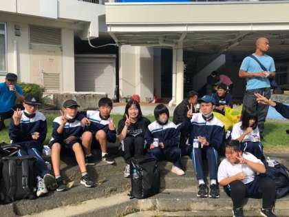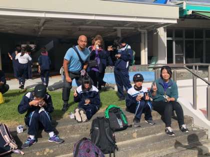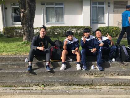 無事学園に到着。園庭でおやつのゼリーと牛乳を飲みます。