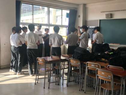 朝練の様子です。教室や廊下でパート練習を行うなど、工夫しながら練習を進めています。